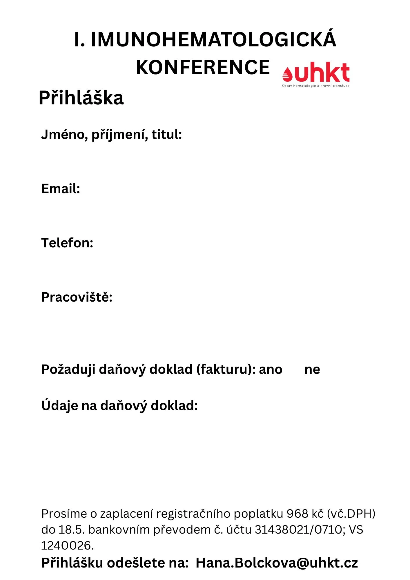 I. Imunohematologická konference UHKT 18. 3. 2026 Konání: 25. 5. 2026 Soubor: Program Místo: LD Praha
